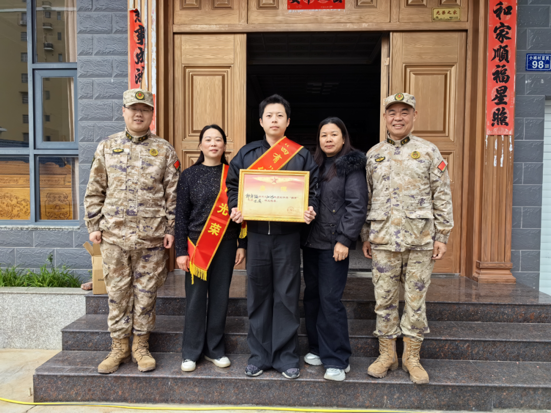 喜报送上门,荣光耀家门。当天,工作人员先后走进辖区内荣获“四有”优秀士兵称号的军人家庭,为他们举行了简朴而庄重的上门送喜报仪式。邻里乡亲闻讯赶来,掌声阵阵、祝福声声,工作人员亲手将一张张承载着军人使命与荣誉的喜报,郑重交到军属手中,细致讲述军人在部队的优异表现与成长收获,让每一位军属都真切感受到“一人参军、全家光荣”的尊崇与荣光。“谢谢党和政府的关心!春节将近,喜报上门,这真是双喜临门,我的孩子真是太让我骄傲了!”一位军属双手接过喜报,脸上满是自豪与感动,紧紧握着工作人员的手连连表达谢意。