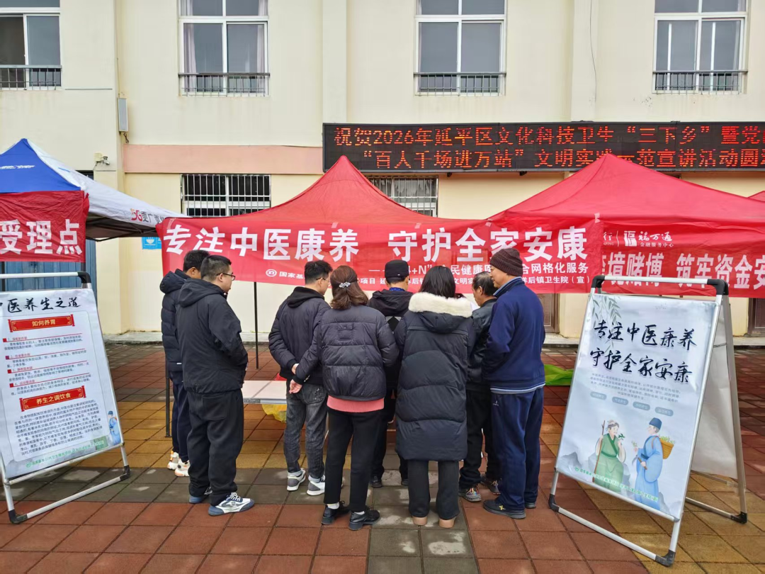 春和景明,暖意融融。近日,2026年延平区文化科技卫生“三下乡”暨党的创新理论“百人千场进万站”文明实践示范宣讲活动在洋后镇隆重举办,下设的卫生健康服务区紧扣“专注中医康养,守护全家健康”主题,依托“4+N”全民健康医防融合网格化服务体系,将优质医疗资源、实用健康技能与中医康养智慧精准送达群众家门口,让健康守护触手可及。