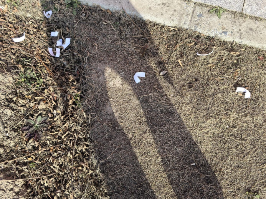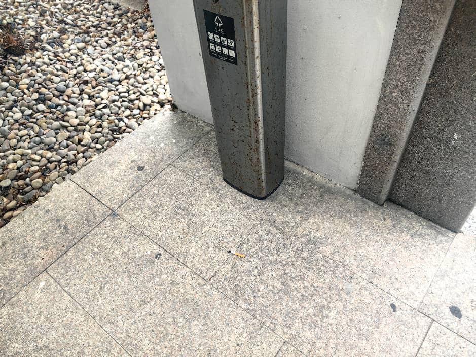 烟头“点点星”:明明不远处就有垃圾桶和灭烟处,熄灭的烟蒂却被随意摁熄、丢弃在地,留下安全隐患与斑斑污渍。