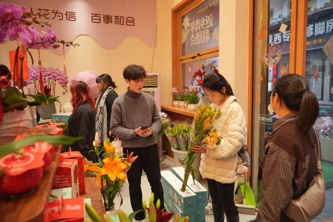 这几名花坊“主理人”的特别之处在于,他们皆是在校大学生。负责百合花坊财务核算与库存管理的石河子大学大二学生帅涵裕向记者介绍,花坊里售卖的物品均由百合集团提供,几名假期前来参加实践的大学生分工合作、各司其职,承担起春节期间的店务运营工作。“这不仅可以让我们体验花坊主理人的日常,还能提前融入社会,接触市场。” 谈到百合花坊的日常运营,负责产品推广与文案策划的南开大学大二学生陈子霖说:“百合花坊的定位从一开始就不是传统花店,而是延平百合产业的‘超级入口’。这也是它最吸引我的地方。接下来,我想通过提升花坊内饰等方式吸引市民游客前来拍照打卡,从而提升花坊知名度。”