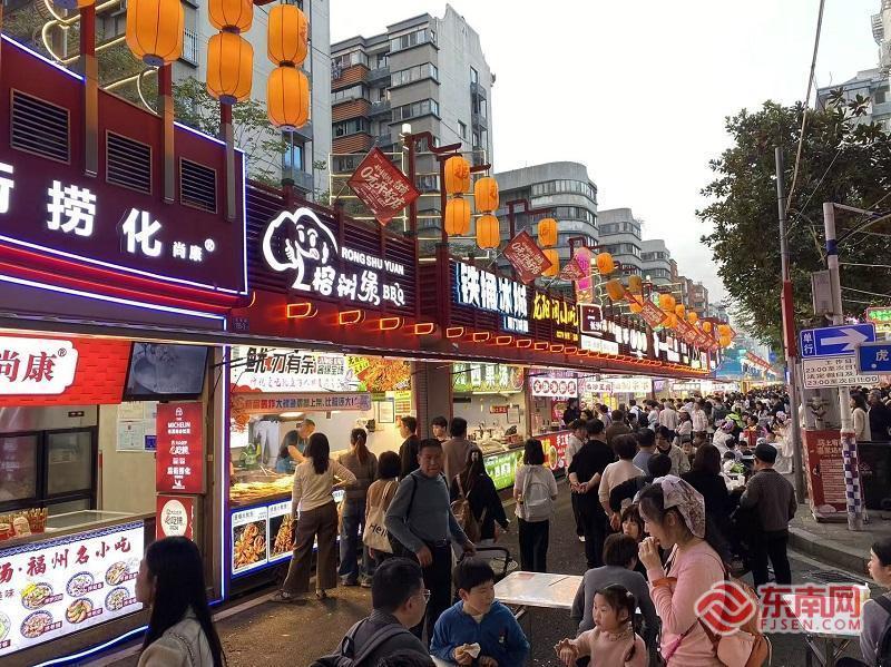 消费者在达明美食街品尝小吃。 厦门以“厦一站 开心购”为主题,举办近两百场新春促消费活动,鼓浪屿AI+AR智慧导览、中山路机器人零售店、五缘湾无人驾驶观光船等科技消费场景亮点频现。 漳州策划100余场消费促进活动,重点推出“年货市集”“畅游山海”“寻味漳州”等特色活动,联动古城古厝、水仙花海、闽南早市等场景。泉州举办“全闽乐购·惠享泉州”2026福马迎新国潮消费季系列活动170场,鲤城《因为刺桐》戏剧盲盒、石狮晋江服饰特惠等各具特色。 三明围绕“乐购三明”主题,推出年货节、新春庙会等促消费活动100余场,覆盖餐饮、住宿、文旅等领域。莆田围绕“全到莆田过大年”主题,以“消费新二十四景”为抓手,将文化IP热度转化为消费实效,美团旅游数据显示,莆田跻身全国游客关注热度增速第五位。 南平举办年货展销30余场,发放消费券200万元,武夷山主景区免门票、免费开放公交,惠民暖心。龙岩以“夜龙岩 小上海”为主题,联动第四届“山茶花”年货嘉年华同步发力。宁德紧扣“山海迎春·福宁惠民”,聚焦六大消费场景,东侨“马上有喜市”、霞浦“浦味年集”等市集轮番登场。平潭开展“麒麟闹春 福聚岚岛”新春主题活动50多场,打造沉浸式消费场景。 重点商圈引领消费热潮餐饮消费领跑假日经济 全省重点商圈新业态不断涌现,客流量和销售额实现双提升。根据抖音发布的2026年春节消费数据,福州、厦门位列春节抖音团购城市消费力TOP10。 福州上下杭步行街客流量和销售额同比分别增长27.00%、25.49%;烟台山商业漫步街区同比分别增长26.70%、9.75%;三坊七巷街区老字号商铺整体营业额同比增长约2倍,同利肉燕、聚春园等餐饮类老字号翻台率达平日3-4倍,鱼丸、茉莉花茶等伴手礼类销量同比增长约200%。 厦门夜间消费热度持续高涨,园博苑单日超1.8万人次打卡。莆田城厢万达广场初二客流突破16万人次,初五客流超13万次,两次位居全国万达广场第一,为历年来首次。