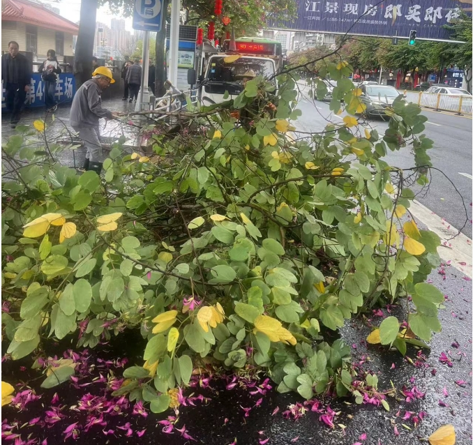 作业人员严格按照安全规范,设置警示区域,规范使用高枝剪、油锯等设备,做到安全作业、科学修剪、随清随运,在消除隐患的同时,最大限度保护绿化成果,为市民营造安全、整洁、有序的城市环境。 城管部门温馨提醒广大市民: 1. 阴雨大风天气,尽量避免在大树、广告牌、电线杆下长时间逗留,远离疑似松动、倾斜的树木。 2. 驾车、骑行途经树木密集路段时减速慢行,注意观察上方与周边状况,谨防断枝坠落。 3. 请勿将车辆长期停放在行道树下,避免被断枝砸损造成财产损失。 4. 如发现树木断枝、倒伏、倾斜等安全隐患,欢迎及时向城管部门(热线:8812319)反映,携手共建安全有序的城市家园。 下一步,区城管综合执法局将持续加强雨天绿化巡查与养护管理,紧盯天气变化,常态化开展隐患排查整治,以快速响应、精细处置、暖心服务,筑牢城市安全防线,守护市民平安出行。 |