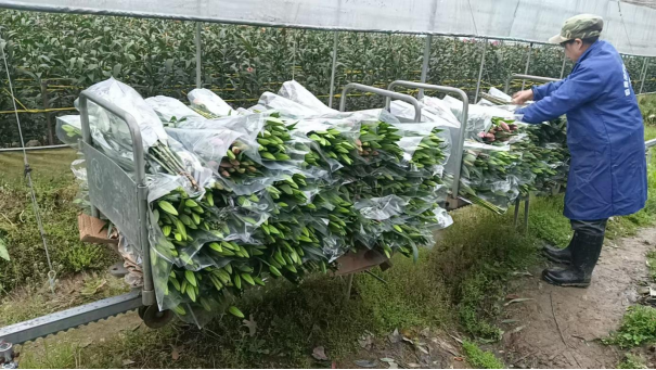 走进欣然花卉赤坑种植基地,节后复工的繁忙扑面而来。工人们穿梭在花田间,手起根落,一茬茬含苞待放的百合被熟练采收,现场完成修剪、分级、包装后,直接装车发货。