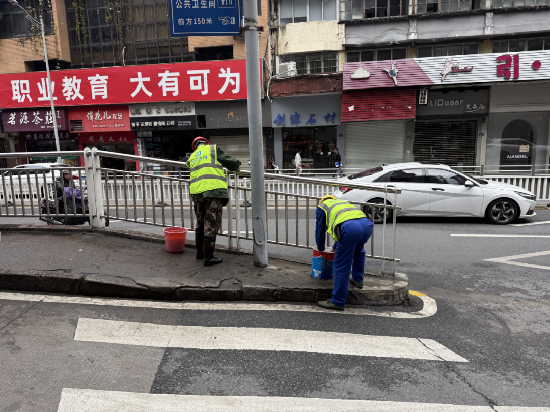 细节处见初心,实现洁净无死角。保洁人员秉持精细化作业理念,手持工具对道路护栏、交通隔离栏进行人工细致擦洗,不放过一处缝隙、一点污渍,让城市“交通风景线”重焕整洁;对背街小巷、边角盲区开展拉网式清理,让洁净覆盖城区每一个角落。