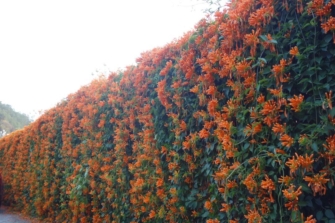 而在江滨中路的古渡码头旁,橙红色的炮仗花正如瀑布般倾泻而下,与江水、古渡相映成趣。市民陈先生周末特地驱车前来赏花,在花树下久久驻足:“这花开得实在太漂亮了,感觉工作了一周的疲惫,看着这些花就全消了。”
