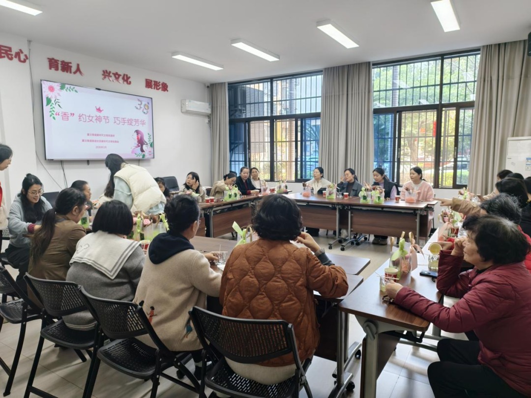 三月春风暖,巾帼绽芳华。为庆祝第116个“三八”国际劳动妇女节,丰富辖区女性同胞的精神文化生活,同时推动党的创新理论深入人心,3月6日上午,紫云街道文明实践所、前进社区文明实践站联合街道和社区妇联精心组织开展了“‘香’约女神节 巧手绽芳华”三八主题活动,将手工艺术与理论学习巧妙融合,吸引辖区众多妇女姐妹热情参与。