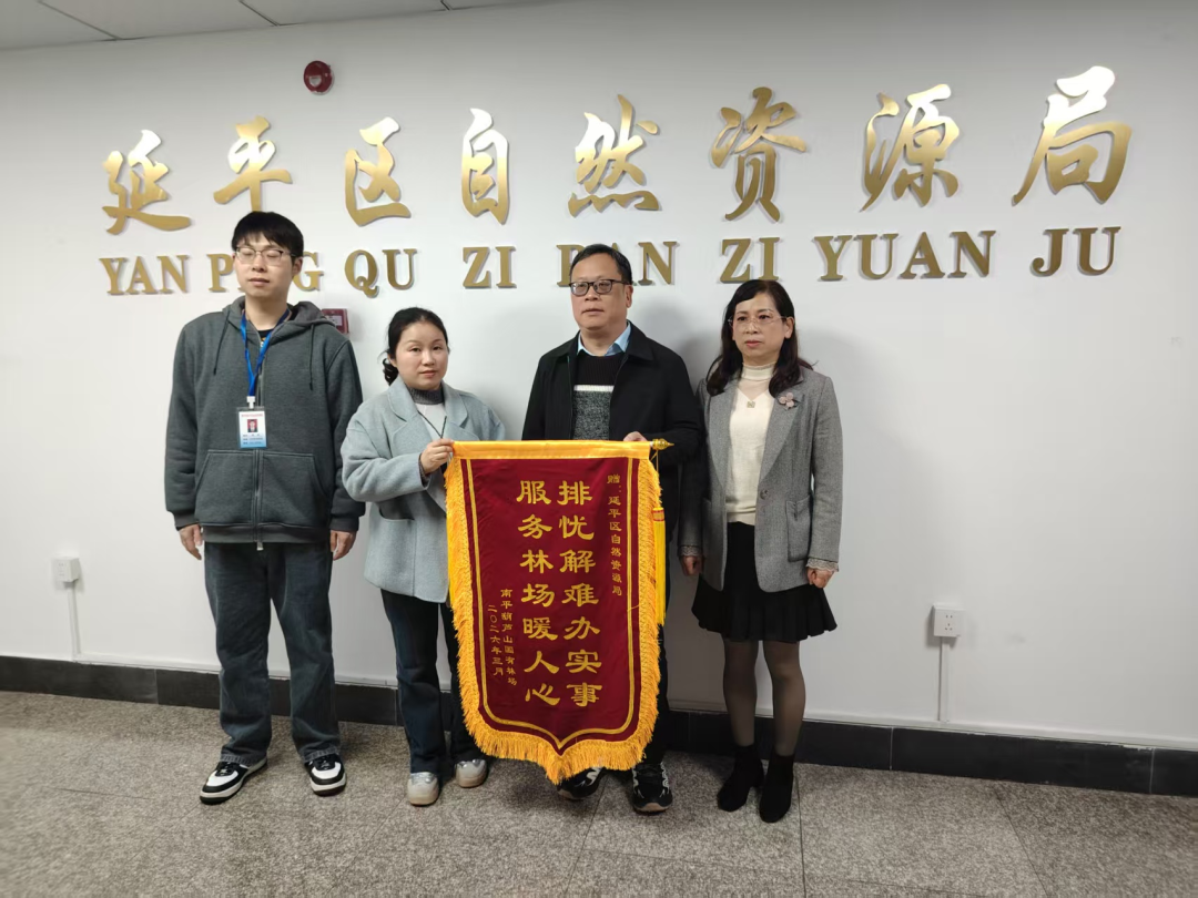 3月初,南平葫芦山国有林场负责人专程来到延平区自然资源局,将一面印有“排忧解难办实事,服务林场暖人心”的锦旗送到工作人员手中,对区自然资源局高效推进延平区葫芦山休闲公园项目用地报批工作、全力服务林场发展表示衷心感谢。