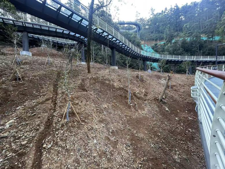 因冬日气候限制,福道沿线绿化景观暂未完全呈现。如今春风送暖,万物复苏,恰逢3月12日植树节,区城管综合执法局抢抓春季绿化黄金期,启动西塔福道景观提质工程,为这条民生步道“补绿添彩”。