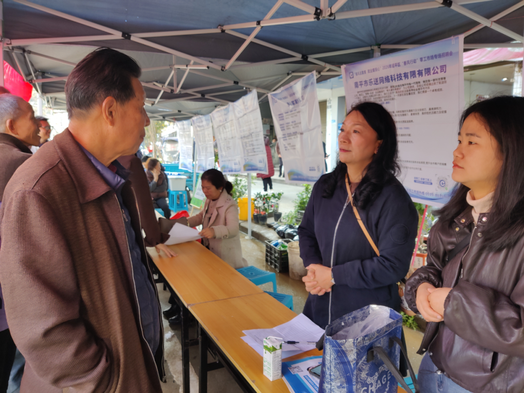 为切实帮助企业解决用工需求,助力辖区群众实现就近就业增收。当天,南山镇联合区总工会、区劳动就业中心、区零工市场共同举办了此次招聘活动,把就业岗位送到了群众“家门口”,推动企业用工与群众就业实现“双向奔赴”。本次招聘会吸引了南平市乐享信息服务有限公司、南平市享通生态农业开发有限公司、福建省南平市三红电缆有限公司、福建省南平市美众针纺有限公司、福建长富乳品有限公司等10家优质企业参与,带来160余个就业岗位,涵盖制造业、现代农业、电子商务、针纺服饰、食品加工等多个行业领域,能够满足不同年龄、不同技能水平求职者的多样化需求。
