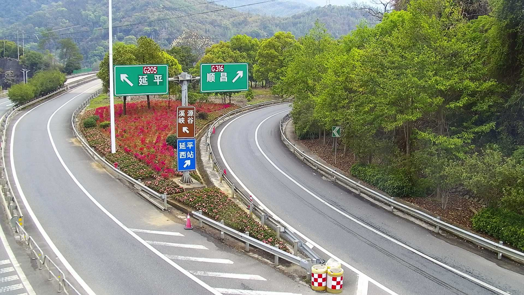 在延平、延平北高速路出入口,经过绿化清表与环境整治,上万株三角梅、西洋杜鹃错落栽植,绿带更规整、花境更饱满。