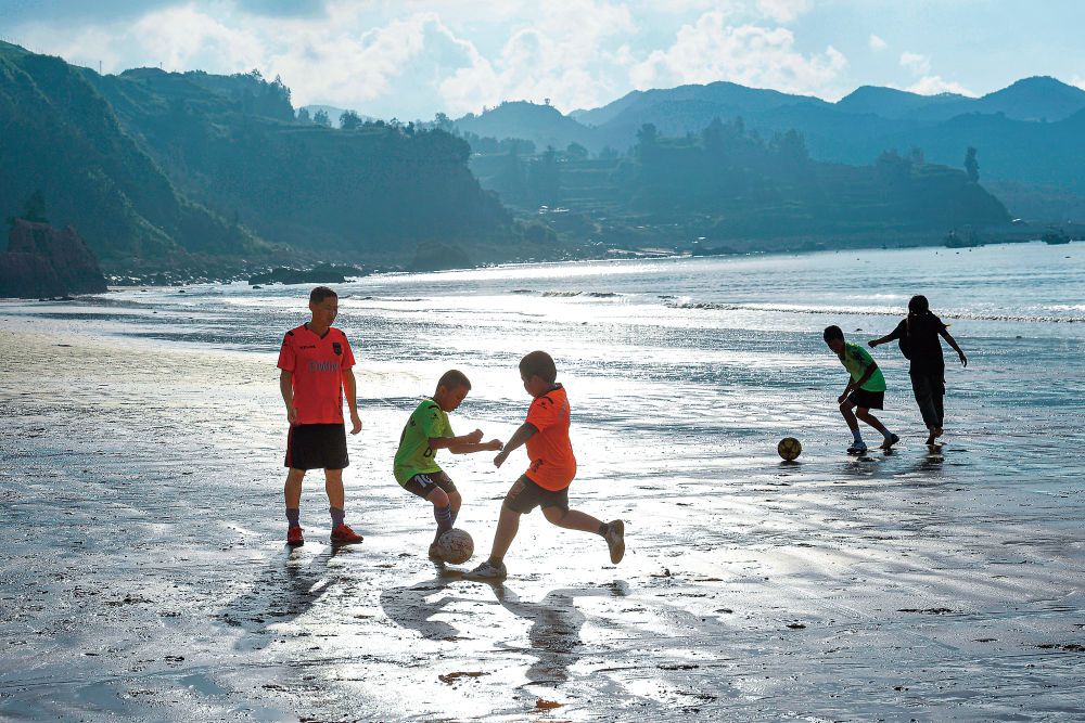 霞浦县下浒镇外浒沙滩上,“长风”足球队小球员们在海边踢球。新华社记者 姜克红 摄 “舶来”足球火种邂逅霞浦娃娃 熟悉足球运动的人若是来到霞浦,不难发现一件趣事。 在本地的球场上,人们用方言大声呼喊足球术语,其中有不少的发音竟与英文发音非常接近:角球corner叫“抗纳”、手球handball叫“很宝”、界外球outside叫“拗赛”……在这座中国东南沿海的小城里,业余球赛俨然有种别样的“国际范”。 霞浦的足球故事,有着清晰的起点。1895年,一群英国人第一次带着现代足球登上霞浦滩涂,自此为这座滨海小城开启了一段跨越百年的绿茵征程。 在不少老一辈足球爱好者的记忆中,儿时的霞浦交通闭塞,娱乐活动极度匮乏,而足球如同一束光,点亮了人们农耕渔牧的生活。没有正规场地,几块砖头随意垒起就是球门;没有标准足球,用废纸、藤条捆扎成的“纸球”,就成了孩子们珍贵的玩具。 “看球、踢球是当时为数不多的娱乐方式,不需要固定场地,街头、空地、晒谷场,只要有一块平整的地方,凑齐人数就能开赛。”年过古稀的足球爱好者缪雅忠回忆,彼时没有专业教练指导,人们凭着骨子里的热爱踢球,相互切磋摸索技巧。 从20世纪20年代开始,足球渐渐成为霞浦一种民间风尚。每逢年节,县里街道、村落组织起各自的球队开展比赛,大人、小孩聚在场边为自己的队伍摇旗呐喊,热闹非凡。多所中小学也陆续开展足球活动,学生们自发组建球队,课间、放学后都成为让人流连忘返的足球时光。 “足球刻进了很多霞浦人的骨子里,不管是老人还是孩子,只要看到足球,就忍不住想踢一脚。”霞浦县足球协会副主席颜勇说,在很长一段时间里,霞浦籍学生都担当福建省内高校足球队的主力。“霞浦学生大部分都能踢两脚”,业界此类评价令颜勇等霞浦足球人尤为骄傲。 国内球迷圈中,国际球星梅西与其家乡阿根廷罗萨里奥常为人津津乐道,相传罗萨里奥狭窄曲折的街巷就是当地孩子们家门口的球场,也成为孕育未来国际足球巨星的“摇篮”。 罗萨里奥的足球氛围令不少球迷羡慕,鲜有人知,就在中国东南沿海的小县霞浦,不同的场景中藏着孩子们同样的热诚。