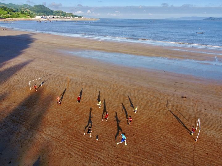霞浦县下浒镇外浒沙滩上,“长风”足球队小球员们在海边踢球。新华社记者 姜克红 摄 “舶来”足球火种邂逅霞浦娃娃 熟悉足球运动的人若是来到霞浦,不难发现一件趣事。 在本地的球场上,人们用方言大声呼喊足球术语,其中有不少的发音竟与英文发音非常接近:角球corner叫“抗纳”、手球handball叫“很宝”、界外球outside叫“拗赛”……在这座中国东南沿海的小城里,业余球赛俨然有种别样的“国际范”。 霞浦的足球故事,有着清晰的起点。1895年,一群英国人第一次带着现代足球登上霞浦滩涂,自此为这座滨海小城开启了一段跨越百年的绿茵征程。 在不少老一辈足球爱好者的记忆中,儿时的霞浦交通闭塞,娱乐活动极度匮乏,而足球如同一束光,点亮了人们农耕渔牧的生活。没有正规场地,几块砖头随意垒起就是球门;没有标准足球,用废纸、藤条捆扎成的“纸球”,就成了孩子们珍贵的玩具。 “看球、踢球是当时为数不多的娱乐方式,不需要固定场地,街头、空地、晒谷场,只要有一块平整的地方,凑齐人数就能开赛。”年过古稀的足球爱好者缪雅忠回忆,彼时没有专业教练指导,人们凭着骨子里的热爱踢球,相互切磋摸索技巧。 从20世纪20年代开始,足球渐渐成为霞浦一种民间风尚。每逢年节,县里街道、村落组织起各自的球队开展比赛,大人、小孩聚在场边为自己的队伍摇旗呐喊,热闹非凡。多所中小学也陆续开展足球活动,学生们自发组建球队,课间、放学后都成为让人流连忘返的足球时光。 “足球刻进了很多霞浦人的骨子里,不管是老人还是孩子,只要看到足球,就忍不住想踢一脚。”霞浦县足球协会副主席颜勇说,在很长一段时间里,霞浦籍学生都担当福建省内高校足球队的主力。“霞浦学生大部分都能踢两脚”,业界此类评价令颜勇等霞浦足球人尤为骄傲。 国内球迷圈中,国际球星梅西与其家乡阿根廷罗萨里奥常为人津津乐道,相传罗萨里奥狭窄曲折的街巷就是当地孩子们家门口的球场,也成为孕育未来国际足球巨星的“摇篮”。 罗萨里奥的足球氛围令不少球迷羡慕,鲜有人知,就在中国东南沿海的小县霞浦,不同的场景中藏着孩子们同样的热诚。