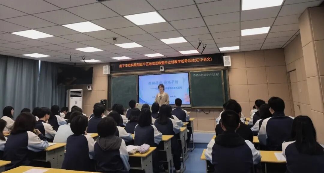 基层点菜,学院派单,联合办席。近日,为期两天的南平市教科院赴延平区开展九个学科送培送教暨毕业班教学视导活动拉开了帷幕,市区两级研训共同体活动在延平区教师进修学校、南平市第三中学、南平市新光学校、南平市水东学校分别铺展开来—— “这场活动,充分彰显了南平市教科院开辟三送(送课、送教、送培)三请(请教研员、请名师、请一线骨干)三平台(研训协作平台、交流互动平台、资源共享平台)的‘对焦学科、精准滴灌’的创新研训机制,通过上下协同联动‘一盘棋’,深化市区融通的研训共同体的体系建设集成,对学科课程特别是毕业班总复习教学进行‘官子妙手’的落子。”延平区教师进修学校负责人介绍,活动强化课程筑基理念,语文、数学、英语等三个学科开设了6个课堂,分别围绕“核心考点,备考体系”“思维提升,优化路径”“评学一体,提升效率”等关键词,针对不同校情,开展了对象化、分众化、互动化的立体课堂创设。其课堂主线明晰,无论是文本内涵挖掘、核心考点解惑还是以评促学增能等,均呈现出实实在在的“干货”。如:武夷山市第三中学柳姝昀老师执教《巧用方法把握诗词的思想情感》一课,她启迪的是“观标题、识作者、抓意象、看注释、觅情语”的思维方法;延平区新城实验中学李佐威老师执教《代数推理》一课,他传递的是以一元二次方程为载体,渗透“消元、构造、化归”等数学意识培育;南平第一中学庄舒婷老师执教《环境保护》一课,她授导的是“读前、读中、读后、写作”这样的递进式学习方法,同时在对比阅读中构建完整问题认知链,以彰显英语学科独特育人价值。