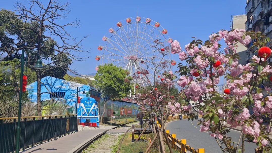 相比开园之初,如今的公园景致更加丰满动人。通过花化、彩化、香化、果化的精心打造,四季皆有风景可赏。眼下正值花期,缤纷花卉吸引不少市民驻足拍照。公园的体验感也显著增强,茶饮书吧、手作披萨、烧烤排档等新业态相继营业,为市民游客提供了多样化的休闲选择。新增的创意墙绘与特色装饰,更成为年轻人钟爱的拍照背景。