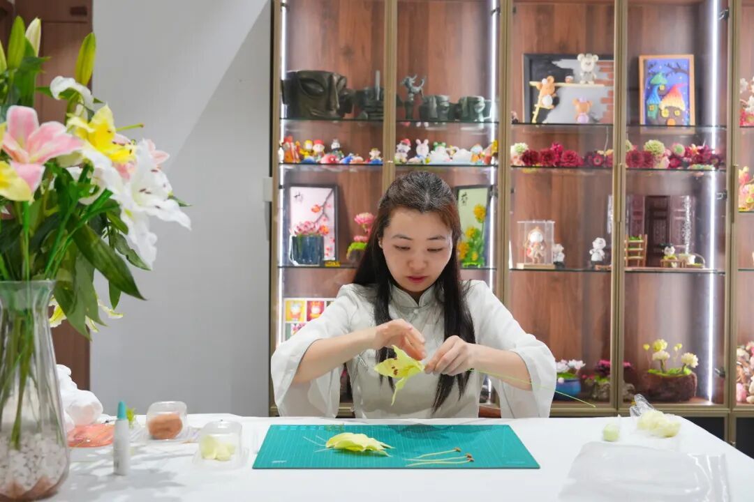 在延平区一叶工艺品店,主理人叶良美正专注地捏塑着一朵延平百合,指尖翻飞间,花瓣层层舒展、栩栩如生,传统面塑技艺与本土文化意象在她手中完美交融。2025年,延平面塑制作技艺入选南平市第十一批非物质文化遗产项目名录,这门传统手艺在新时代焕发新生。