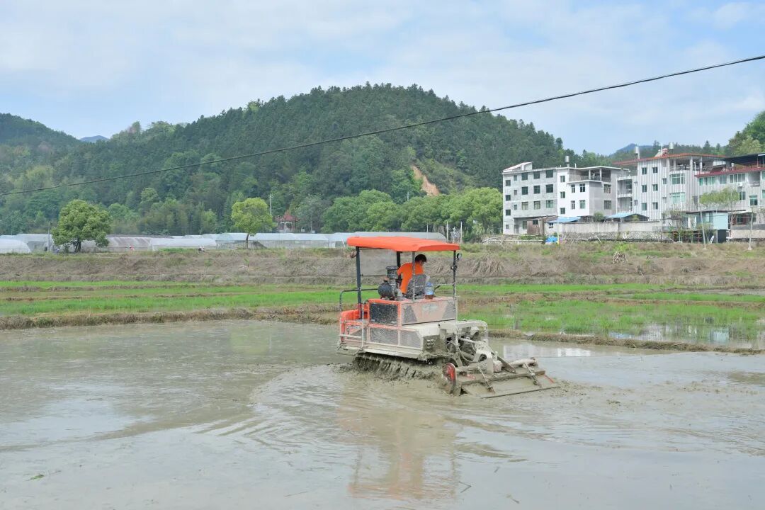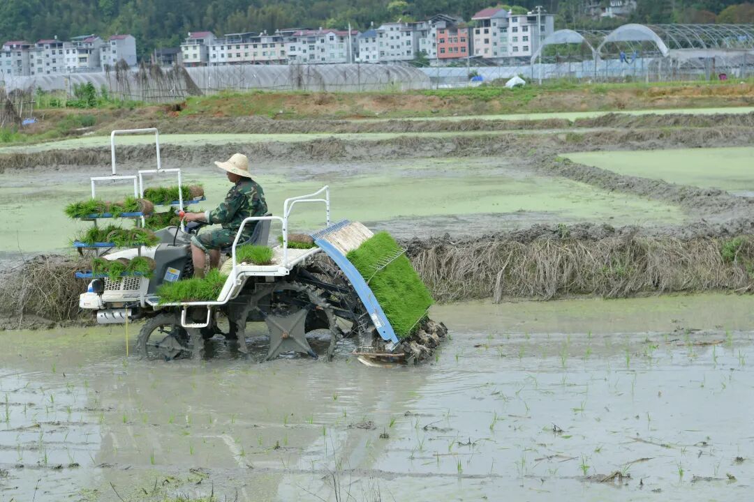 春风拂沃野,田间农事忙。4月10日上午,在延平区夏道镇吴丹村的高标准农田现场,一幅现代农业的春耕画卷正徐徐铺开:旋耕机在水田中搅浆平整地块,为插秧做好先期准备;植保无人机腾空而起,精准喷洒底肥;插秧机来回作业,嫩绿的秧苗齐整植入泥土,笔直延伸。从地面到空中,机械化、智能化的农机各司其职,为春耕生产注入强劲动力。
