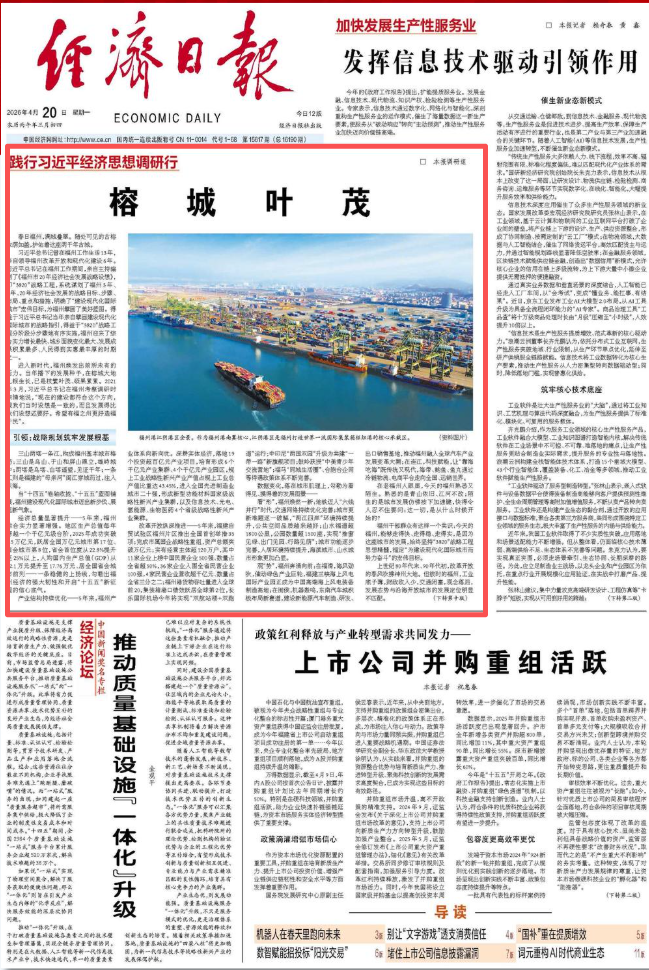 4月20日,《经济日报》头版头条刊发《榕城叶茂》。详情如下——