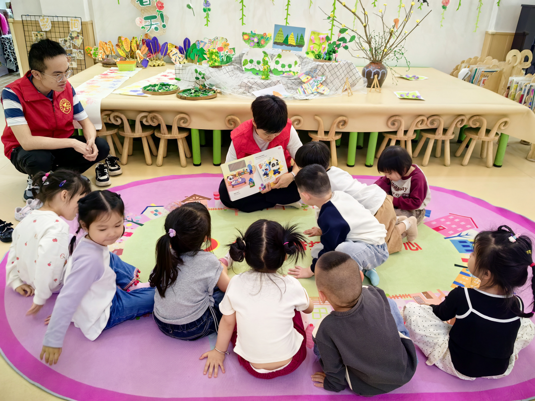 活动现场暖意融融,书香四溢。志愿者们化身“故事哥哥/姐姐”,以“视听触”多感官沉浸式服务,为孩子们打造了一场趣味十足的阅读盛宴。轻柔的纯音乐缓缓流淌,营造出温馨静谧的阅读氛围,让孩子们快速沉浸其中。