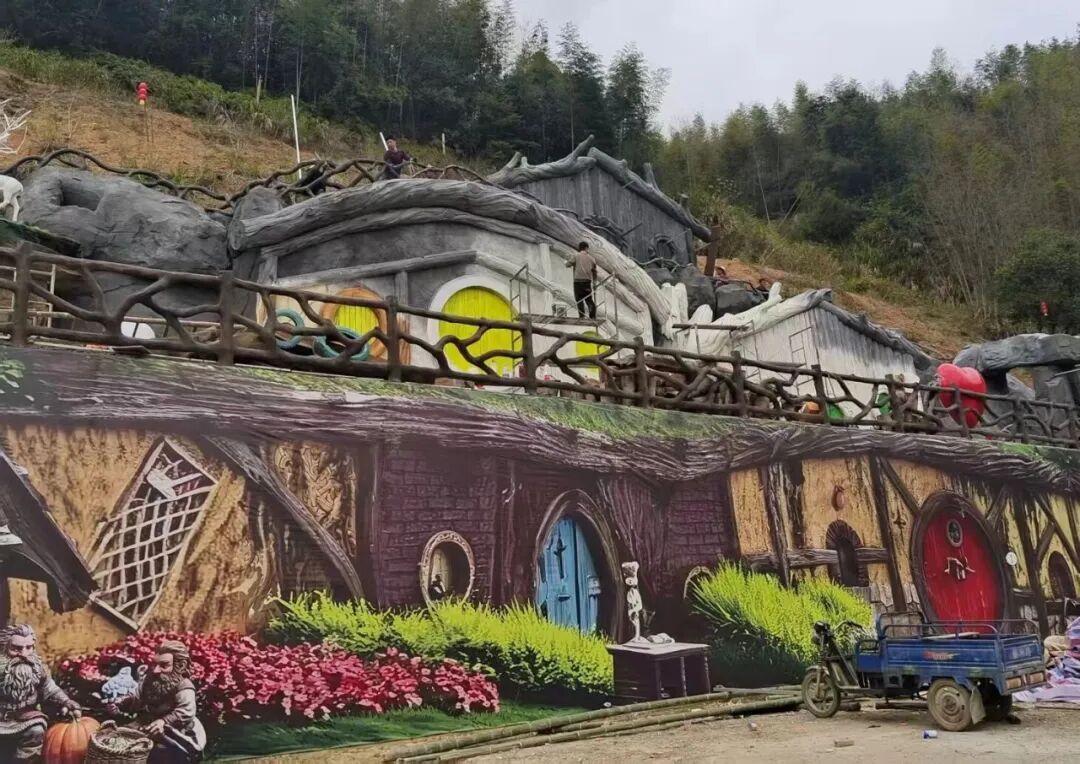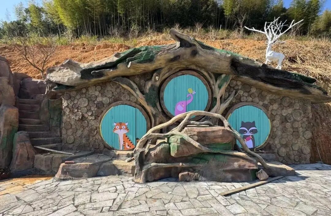 春日暖阳漫过山野,延平区赤门乡赤门村的山坡上,错落的霍比特小屋嵌在起伏的山体间,圆润童趣的建筑与山林绿意融为一体,宛若藏在乡野间的童话秘境。