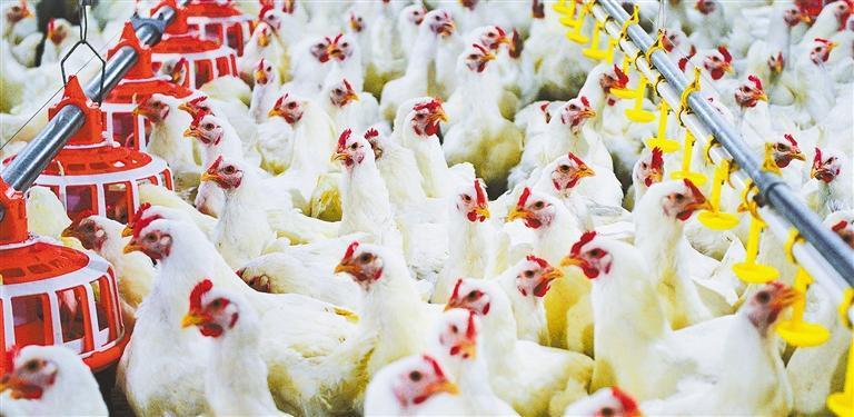 圣农集团总部。 陈志鸿 摄(中经视觉) “以前养鸡靠经验,现在通过屏幕就能实时监测不同鸡场的养殖情况,精准度完全不在一个层级。”圣农光泽基地肉鸡养殖事业部副总监张春雨举例说,小鸡刚进舍时要保持34摄氏度,之后每周精准下降2摄氏度至2.5摄氏度,到出栏时刚好降到20摄氏度。夏天地面上5厘米厚的稻壳垫料松软蓬松,踩上去如同天然地毯,冬天会把垫料加厚到8厘米,既保暖又能吸收水分,让鸡群的活动环境始终干燥舒适。 饲料与饮水环节的科技赋能,更是细致到“克”与“秒”。“不同日龄的鸡,采食量不同。”张春雨说,21日龄的肉鸡每天摄入100多克饲料,到育肥阶段采食量逐步递增。这些都是根据白羽肉鸡生长特性精确计算,系统会自动根据鸡群日龄调整投喂量。 让“鸡生”幸福,不只是吃好喝好住好,还要留出足够的玩耍空间。监控视频里,近3万只小鸡,有的扎堆“社交”,有的围着食槽捡漏,还有的满鸡舍溜达锻炼,1920平方米的鸡舍显得挺宽敞,留出了大片空白地带。 张春雨介绍,普通笼养的鸡1平方米要挤20只;圣农采用大规模地面平养模式,“空间大了,鸡心情好,运动充足,肉质自然更紧实、口感更好”。 这不仅是动物福利,更是科学养殖直接影响鸡肉品质和口感的核心一环。作为目前国内极少数实现大规模平养的白羽肉鸡企业,圣农鸡肉的口感得到众多国际餐饮巨头的认可,成为长期核心供应商。 圣农养鸡的“核心秘诀”,除了智能化的养殖环境,还有科学配比的“营养餐”。圣农研究院副院长卢长吉透露,经过持续的品种改良和配方优化,升级版“圣泽901”的料肉比已降至1.423,意味着每增重1公斤鸡肉仅消耗1.423公斤饲料,这一数据达到国际领先水平。 “别小看这点差距,对圣农这样年出栏8亿羽肉鸡的企业来说,料肉比降低0.05,每年就可节约饲料成本3亿多元。”卢长吉边说边在黑板上算了一笔账,仅饲料营养环节就能让养殖成本下降13%。 科学养殖,还意味着更小的环境负担。 近年来,光泽县是全国白羽肉鸡养殖密度最高的县,年出栏白羽肉鸡产能占到圣农的50%左右。但在光泽县走访时,无论在养殖场周边的村庄,还是在田间地头,都闻不到异味,看不到斑斑点点的鸡粪、四处飞散的鸡毛,反倒是空气清新,水质清澈,还有几家高端乡村民宿在此经营。 大型养殖企业与山清水秀和谐共处背后,是圣农对绿色发展的执着与坚守。 2002年,时任福建省省长的习近平同志到圣农调研时指出,农产品加工业一定要走生态效益型产业之路,以内涵式发展为主,使经济效益和社会效益高度和谐。多年来,圣农始终牢记嘱托,坚持绿色化养殖。 记者来到圣农综合三养殖场时,这里刚刚迎来一批肉鸡出栏,装载着混合鸡粪的稻壳垫料的密闭式清运车辆正有序进出,这些废弃物会被直接送往圣农旗下的光泽县圣新能源有限责任公司。 “我们的料场是全密闭设计,配备了环保除臭设备,通过负压抽风锅炉高温分解,还有微负压设计让异味溢不出来。”圣新能源有限责任公司副总经理肖连法介绍,鸡粪与谷壳混合后,经干燥、粉碎制成生物质燃料,送入锅炉燃烧,产生的蒸汽通过七八公里长的管道,供应给园区的肉鸡加工厂、食品厂等,替代了原来的24台燃煤小锅炉。目前,一年消耗21万多吨鸡粪和谷壳,年发电超5647万千瓦时,年可供蒸汽超27万多吨,年节约标煤7万吨。 养殖和加工产生的废水也有着专属的“净化通道”。在光泽县和顺工业园污水处理厂,记者见证了污水的“蜕变”——浑浊发黄、漂浮着油脂的屠宰废水进入处理系统,经过多道工序后,变得清澈透明。 走到厂区末端的出水口,清澈的水流顺着渠道缓缓流出,水面平静无异味,岸边草木青翠。污水处理厂负责人张端鑫介绍,这些达标水会直接汇入门口的富屯溪,顺着溪流一路向东。站在溪边望去,溪水清澈见底,偶尔还有小鱼游过。这一溪碧水,是一家民营企业用科技书写的绿色答卷,也是现代养殖业与绿水青山共生的灵动诗篇。 火爆出圈: “脆皮炸鸡”抵达消费者餐桌 电商平台上,一袋圣农的冷冻鸡腿肉丁售价10元,2斤装的鸡翅中售价55元,掌中宝可以卖到25元一斤……一只只肉鸡分切成不同部位后,身价比整只鸡单卖高多了。 找到这个让鸡更值钱的关键一步,圣农并不轻松。 上世纪八九十年代起,随着肉鸡养殖从农家散养转向规模养殖,周期波动也越来越明显,高峰期赚得盆满钵满,低谷时卖一只亏一只。“农牧行业属于高风险、高投入、低利润的行业,病根就是产业链太短。”走过多个高峰低谷,傅光明看清,单一养鸡永远被周期牵着走,延伸到熟食深加工才能创造可靠利润。 1993年初,傅光明抵押名下的多个养鸡场,从银行贷款引进了全国第一条现代化肉鸡加工生产线。 “洋机器一来,我们都去看,没见过,很稀奇!”工人们围着刀片反复研究,议论纷纷,没人知道这笔投资是否值得。几个月后,第一个肉鸡加工厂建成投产,公司年产值一下冲到4500万元。